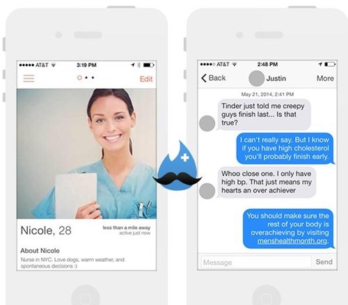 Nurse Nicole does not actually exist. Instead, her Tinder profile was set up as part of a health awareness campaign run by Matches for Men's Health. When a Tinder match is made, Nurse Nicole responds to the sometimes salacious texts from suitors with pithy, health-related comebacks encouraging trips to the doctor for prostate exams, testicular cancer screenings and colonoscopies. If the men get too worked up, she will even suggest blood pressure monitoring.