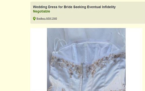 This stunning, tuille swathed, ivory bridal gown has a proven track record of producing an adulterous, deceitful, double-crossing and traitorous "soulmate".