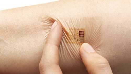 The device is a sensor, and it represents some of the core technology of MC10, a startup that makes flexible electronics. Ghaffari, cofounder and director of advanced technology at the company, isn't at liberty to tell me what, exactly, it senses. It could be temperature, muscle activity, or heart rate.