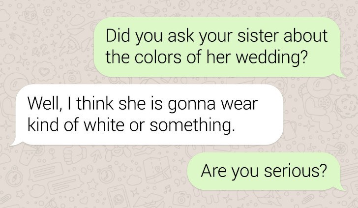 âMy boyfriendâs sister invited us to her wedding. I was trying to find out about the decorations for the celebration so I could choose an appropriate dress.â