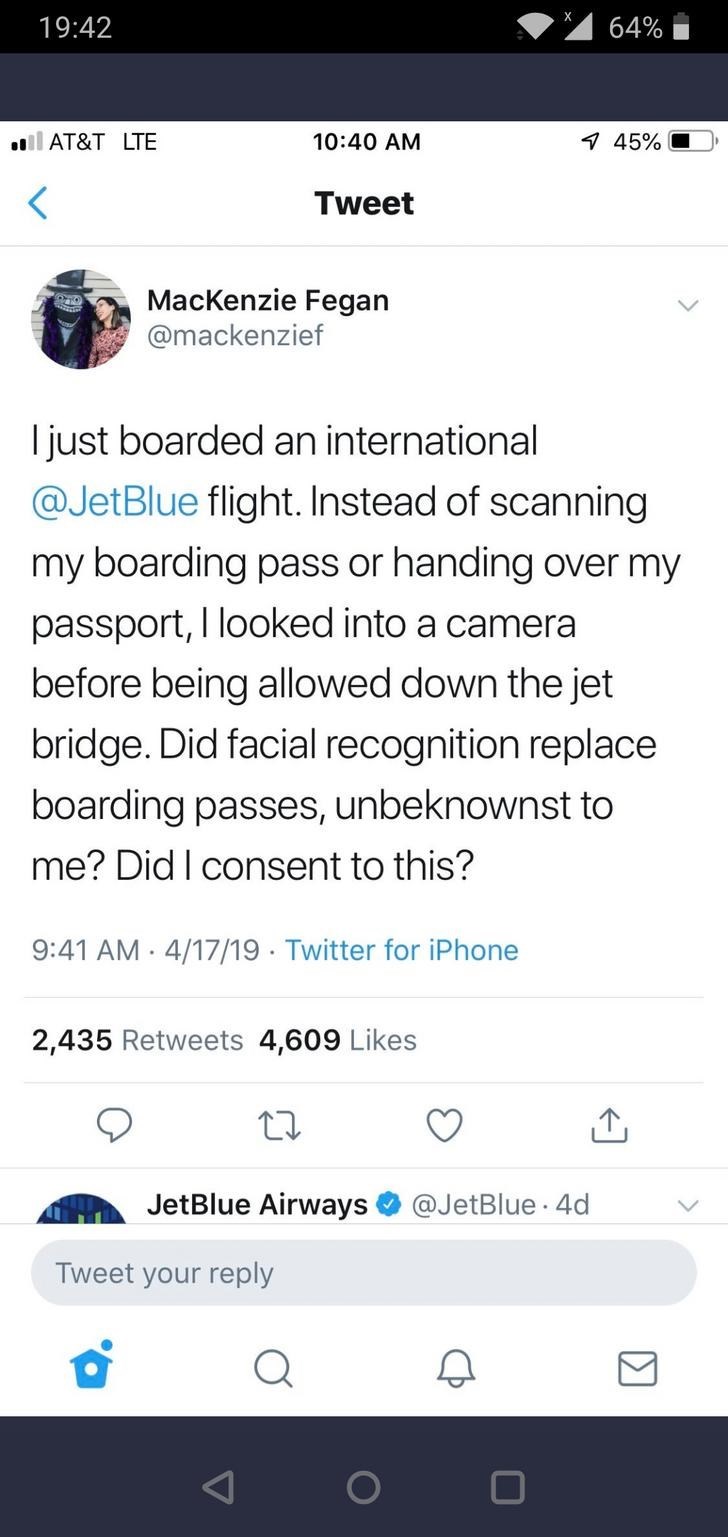Read those contracts people! The consent is there (hopefully) whether you realize it or not. This traveler's Twitter thread about the state of facial recognition software is both unsurprising and deeply terrifying. What a time to be alive.
