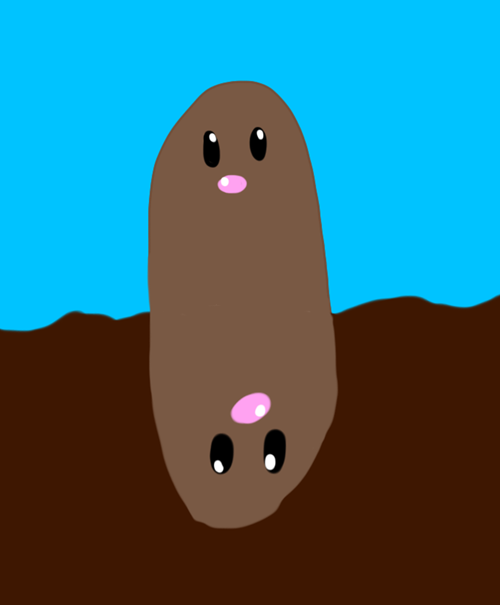 He just flips himself over when he gets bored. Maybe that's where Dugtrio comes from?