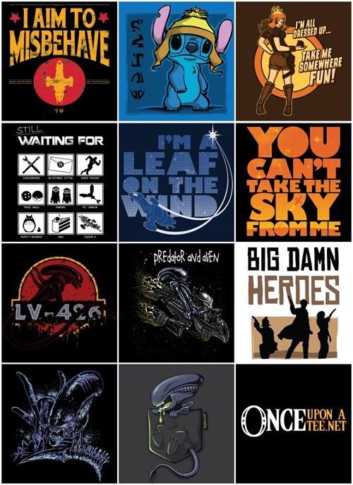 This week's collection is inspired by Firefly and Aliens. Use the code "GEEKLIFE" for 5% off $20 or more and if you could continue to spread the word, we'd be eternally grateful! Only at Once Upon a Tee.