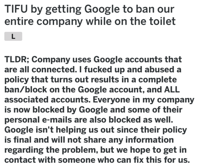 Panicked Guy Gets Google To Ban His Entire Company While On The Toilet