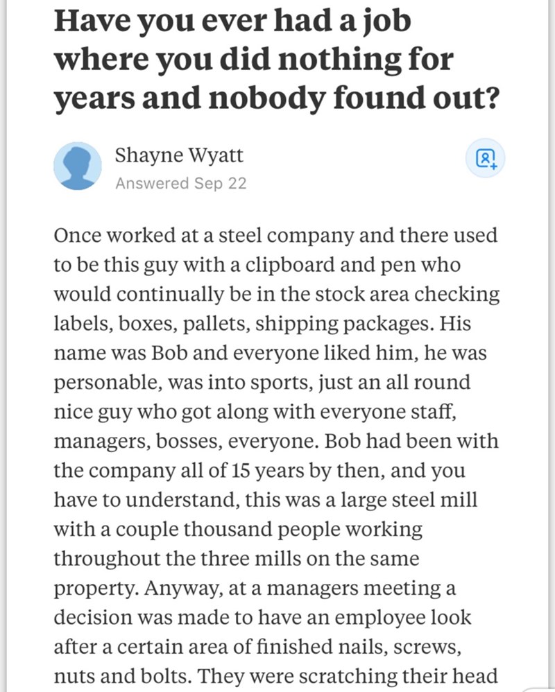 Just watch out for when you try to take his stapler! Bob is an absolute legend.