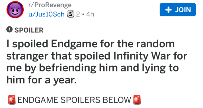 Guy Goes Full Sociopathic Revenge On Stranger Who Spoiled Avengers For Him