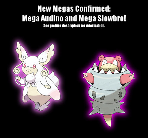 The official Korean Pokémon site has revealed Mega Slowbro and Mega Audino. The pages for them where taken down quickly, and are currently offline. Mega Slowbro is Water/Psychic and has Shell Armor. Its Defense and Special Attack increase greatly. It is 2.0 m (6'07") tall and weighs 120.0 kg (264.6 lbs.).