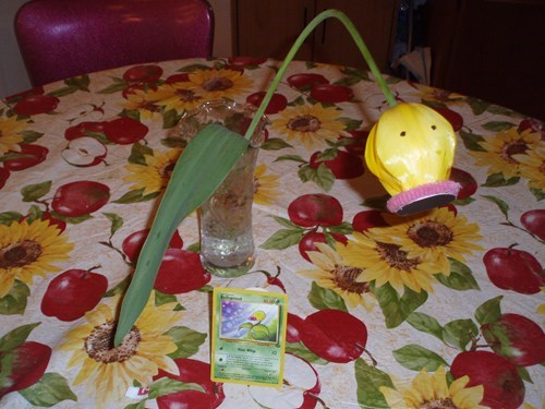 So I found this flower one morning and thought to myself, "I could totally make this flower look like a Bellsprout!" I put my thought into action and made this.