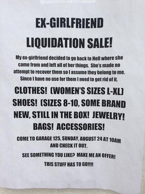 The Ex-Girlfriend Sale!