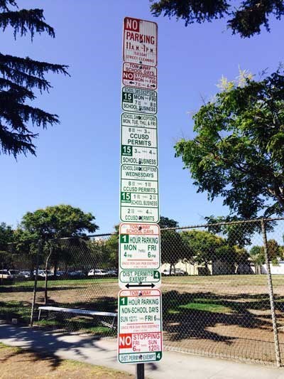 The Parking Sign at a California School is Determined to Reach the Heavens