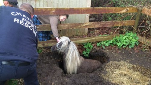 Adorable Miniature Horse Rescued From Adorable Miniature Sinkhole