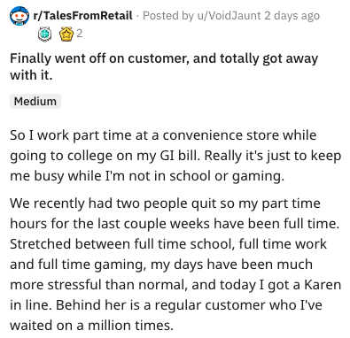 "Can I speak to your manager" type customers get the full ire of the internet, and even their own children.This instance in particular sure is a rare sight to behold. In all of the crazy stories we hear of massively entitled people being complete jerks to anyone in retail, almost never do these wild customers ever get a piece of someone's mind. And not only that, this employee actually got away with it. Amazing.