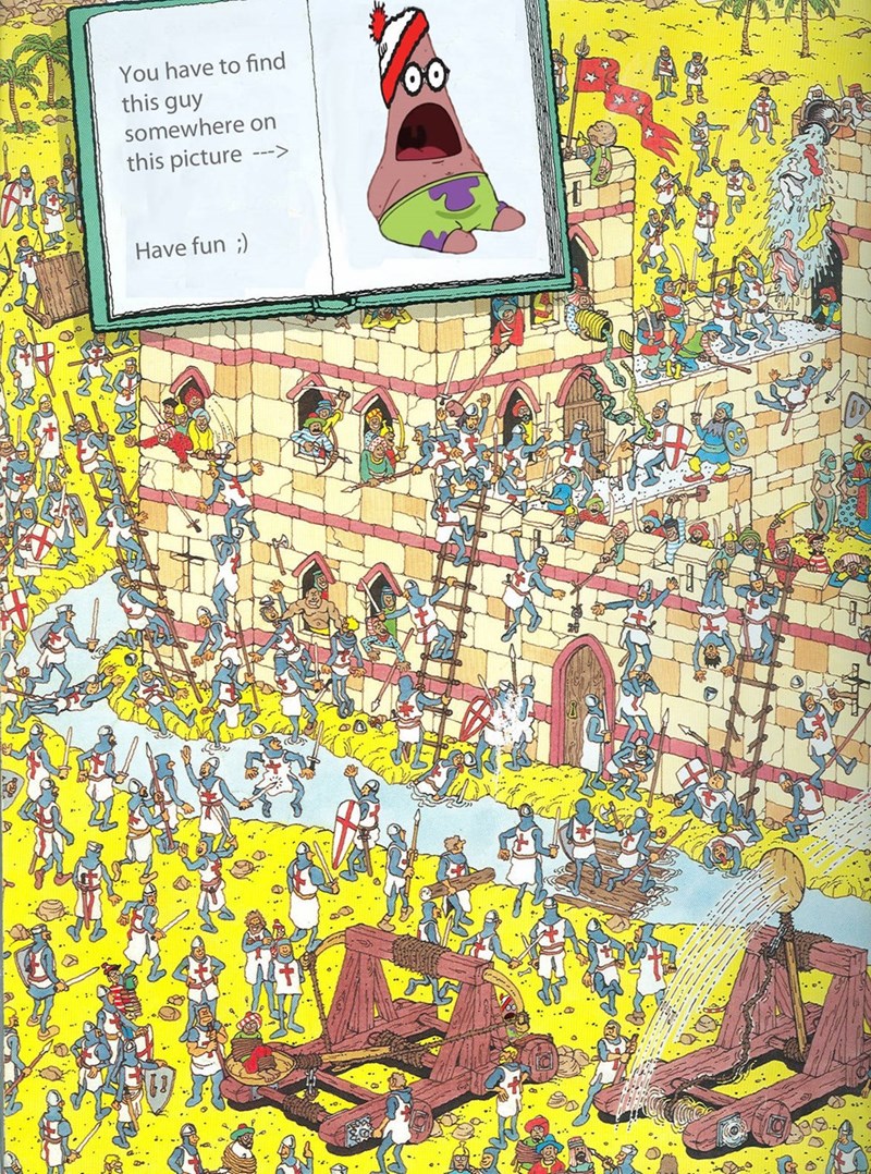 Were you able to find Patrick? Because it's taking us FOREVER. "Where's Patrick?" is a parody of "Where's Waldo" but as you can see below, it's much more enjoyable looking for a screaming starfish than a candy-cane-stripped dude. Just a warning, this is expert-level sh*t.