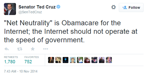 But really, Ted Cruz gets to the heart of the matter, because clearly an open internet where businesses are on an equal footing to compete with one another is the socialist Obama-geddon of the internet as we know it.