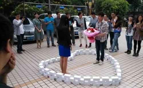 That's how much this stunt cost a young computer programmer from Guangzhou, China. 11/11 is Single's Day in China (because the four 1s represent loneliness), and so the man figured it was a perfect day to make sure he wouldn't be single for the rest of his life (or until the couple got tired of each other). He spent an equivalent of two years' salary on the iPhones, arranged them into a heart, and gathered all of his close friends and family to surround them for the proposal. Her answer? Lolnope. Soon after, photos of the failed proposal started to circulate on Chinese social networking site Weibo. And they say chivalry is dead!