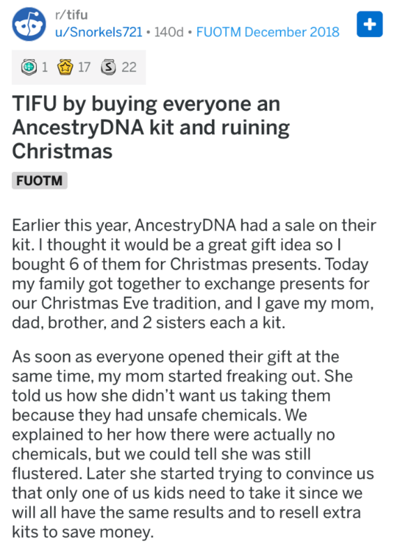 Throwback Thursday! This'll go down in history as the worst DNA Ancestry kit experience of all time. Can't even imagine how this family handled their truly shocking revelation. As the story unfolds though, we see it take on a more beautiful and loving note. It sounds like everything carried out was done so with the best of intentions.