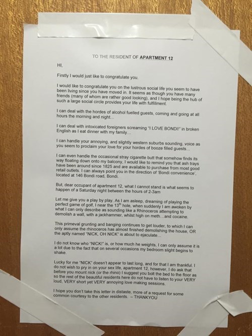 If This Letter is to be Believed, We're Looking at the Worst Neighbor Ever