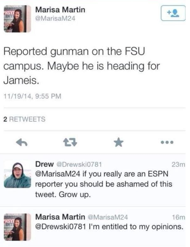 "Reported gunman on the FSU campus. Maybe he is heading for Jameis."Jameis Winston is the FSU quarterback who has been at the center of a number of scandals and legal issues over the past year or so.