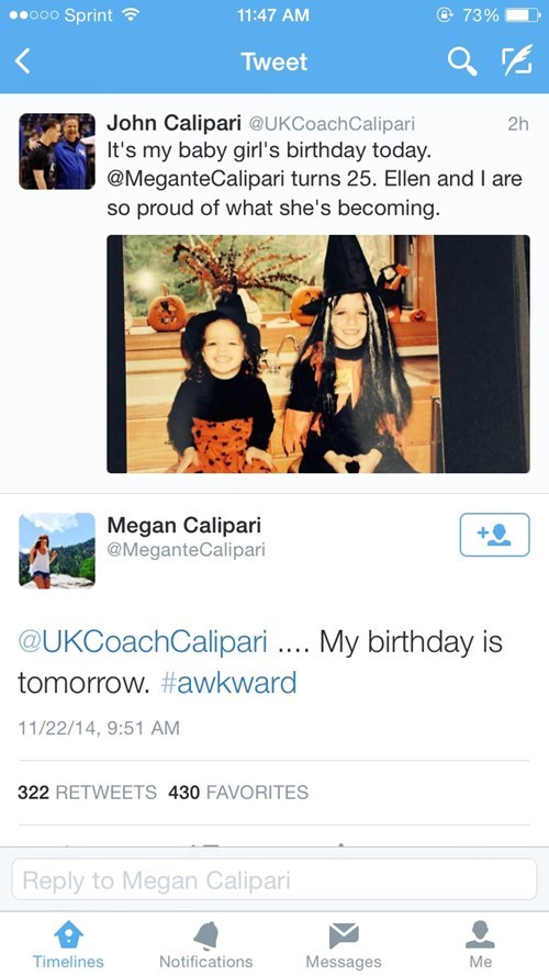 Kentucky Basketball Head Coach John Calipari Wishes His Daughter Happy Birthday on the Wrong Day