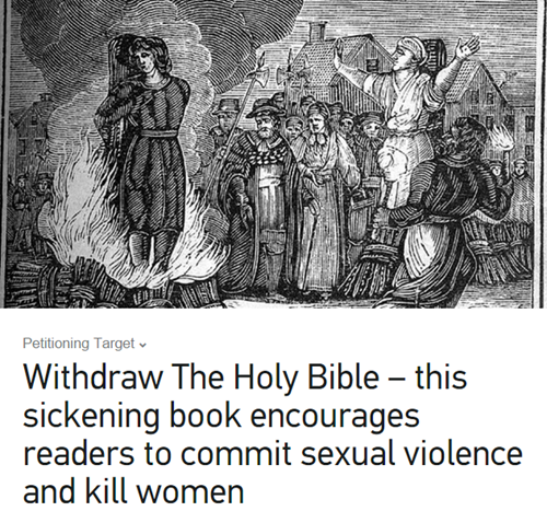 "We've been speaking to many customers over recent days about the game, and there is a significant level of concern about the game's content," said Target General Manager Corporate Affairs Jim Cooper. "We've also had customer feedback in support of us selling the game, and we respect their perspective on the issue. However, we feel the decision to stop selling GTA5 is in line with the majority view of our customers."In response, there is now a petition to ban The Bible for the same reason GTA V was pulled (sexual violence and killing women) to show how idiotic the first petition was in the first place.