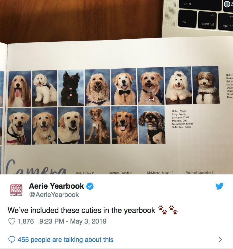 The yearbook crew quipped on Twitter that Chief McAlpin — a yellow lab — “loves his yearbook,” and encouraged students to seek him out so they could sign it.