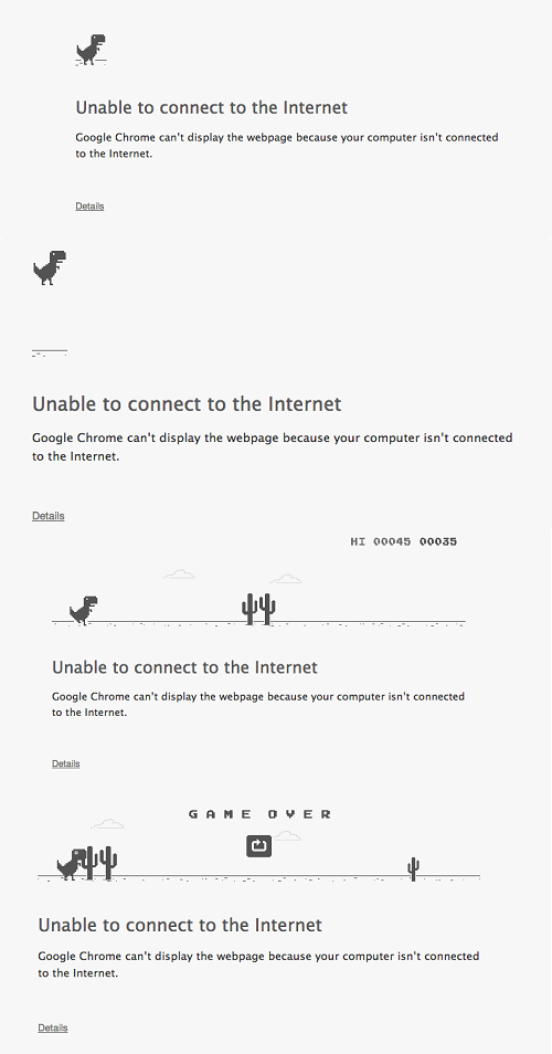 To play the game just disconnect your internet and press the space bar when you hit that page!