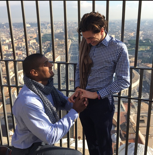 Michael Sam made waves the other year when he was drafted by the St. Louis Rams as the first openly gay NFL player. Today, amid talks that the supreme court will take a closer look at the constitutional grounds for gay marriage, Sam posted this photo on Instagram proposing to his long-time boyfriend Vito Cammisano.