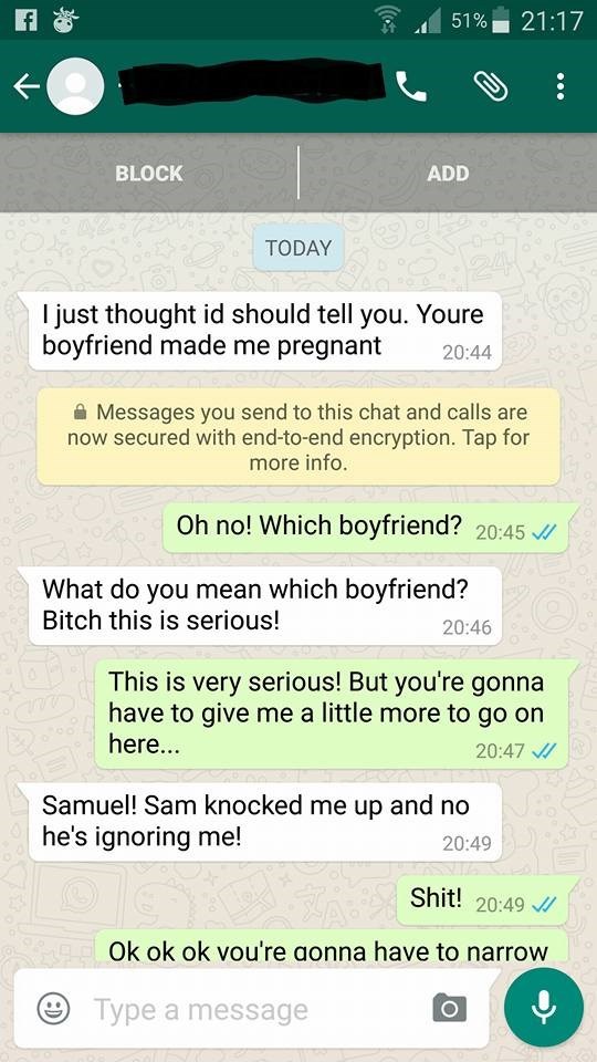 Woman Trolls Some Sorry Stranger After a Text Claims "Your Boyfriend Made Me Pregnant"
