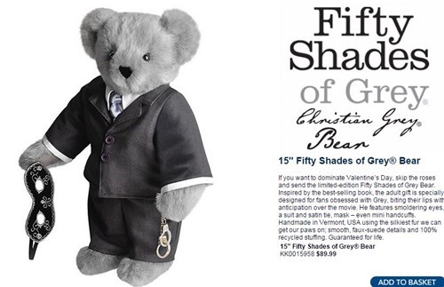 That image is completely 100% real. The Vermont Teddy Bear Company, long-time sellers of adorable bear products, is selling a Christian Grey teddy bear - apparently fully licensed. The parade of sadness continues on their official tumblr, which features forced memes of the bear making terrible sexual puns:![]()