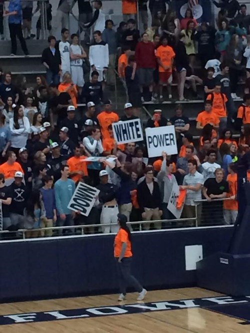 After a few minutes of these signs on camera, school officials rushed to get the students to take them down and leave the event. Not before everyone saw them first though.
