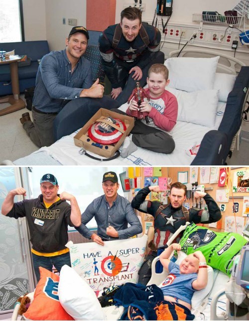 Chris Evans and Chris Pratt Finish Their Super Bowl Bet at Seattle Children's Hospital