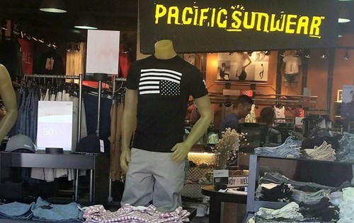 A black and white American flag t-shirt spotted at a Pacific Sunwear in Alabama this weekend has a lot of people seeing red.