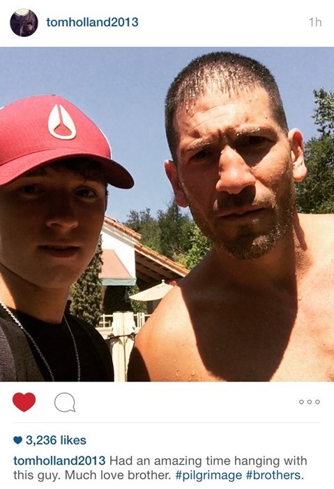 Tom Holland the 19-year-old actor who just got cast as Spider-Man, posted this selfie with Jon Bernthal, the 38-year-old actor who will be playing The Punisher in Daredevil Season 2.