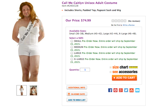 "To make a costume out of a marginalized identity reduces that person and community to a stereotype for privileged people to abuse. In this case, if you follow through with production of a Caitlyn Jenner costume, cisgender people will purchase it to make fun of her and our community," the petition reads.