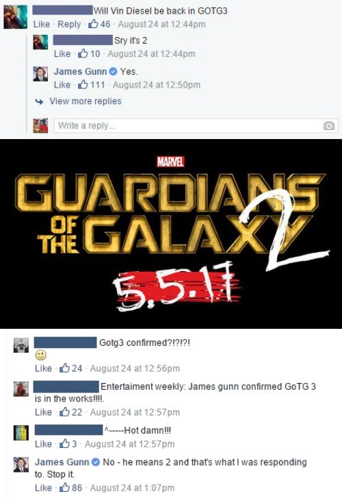 It's good, but somewhat irrelevant news, but then a typo lead to James Gunn scolding the rest of Facebook. We already know Marvel's line-up for the next 5-years, do we really need any more?