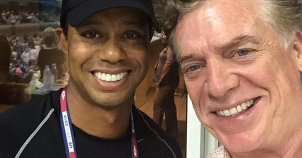 Actor Christopher McDonald, know for his role as golf pro Shooter McGavin in Happy Gilmore, posed for a selfie today with real-life golf pro Tiger Woods.