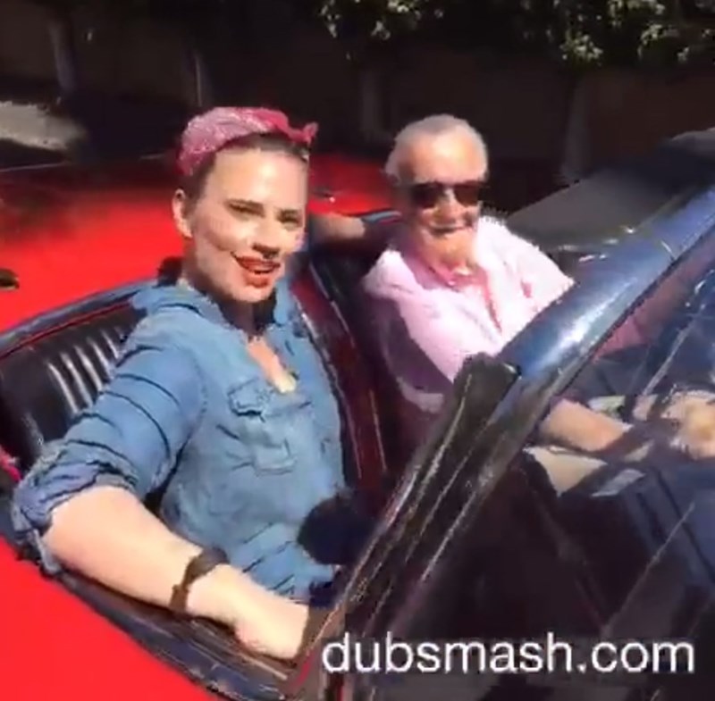 Now, they're at it again, lip-syncing their way through popular songs (this time for charity). This time around, Hayley Atwell enlisted Marvel cameo-king, Stan Lee to hit Clark Gregg hard in his show's signature car, Lola.