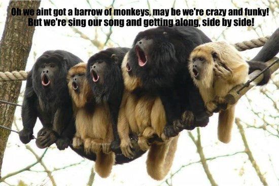 Oh we aint got a barrow of monkeys, may be we're crazy and funky!