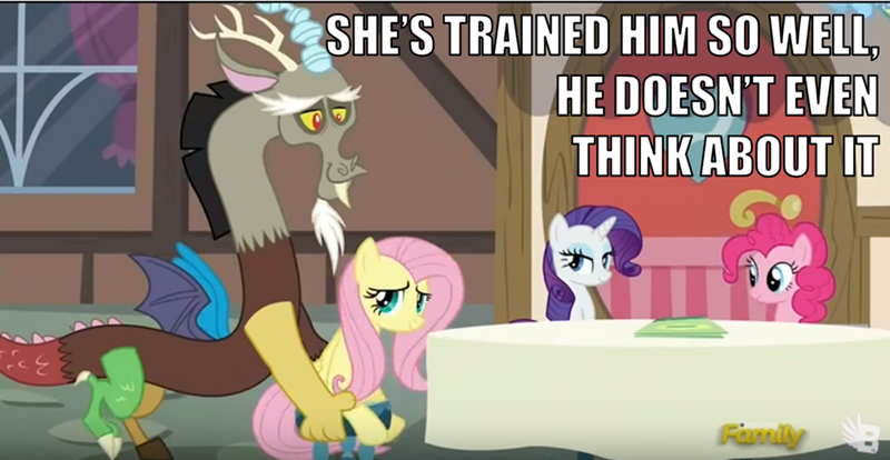 He could have seated any pony there, or none, but even in the middle of his shenanigans, he's most courteous towards Fluttershy.
