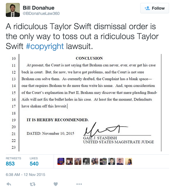 Not In Her Wildest Dreams Did Taylor Swift Think The Judge Would Dismiss Her Copyright Lawsuit Using Her Own Lyrics