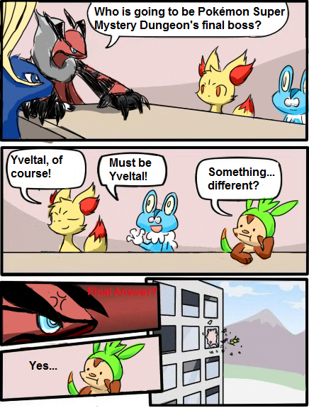 Pokemon Super Mystery Dungeon is going to be release in the USA on November 20. Many people say that Yveltal is the final boss but I don't think it's going to be that obvious...