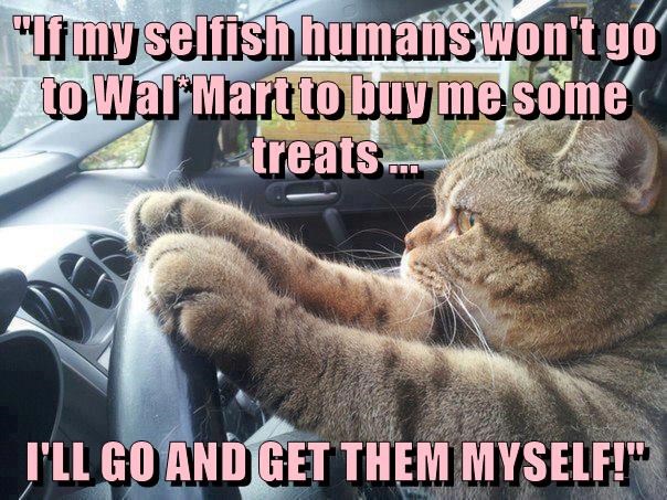 "If my selfish humans won't go to Wal*Mart to buy me some treats ... I'LL GO AND GET THEM MYSELF!"