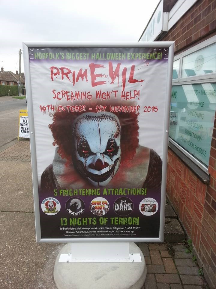 This creepy clown was popping up all over Norwich, UK around Halloween. Due to the ominous poster cropping up in places where it could stare at children and give them nightmares, it was banned.