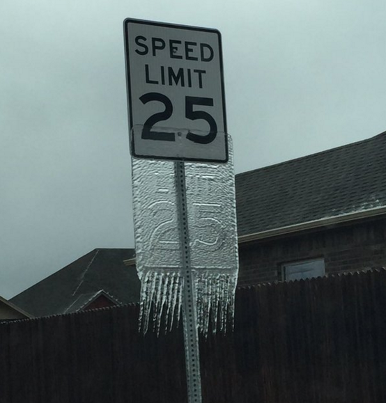 In Mustang, Oklahoma a snow storm is melting away. This includes a sheet of ice that became a perfect copy of the sign it's sliding off of. The image of this phenomenon was shared on social media to much debate, with some people questioning how the ice melted in the shape of the letters.