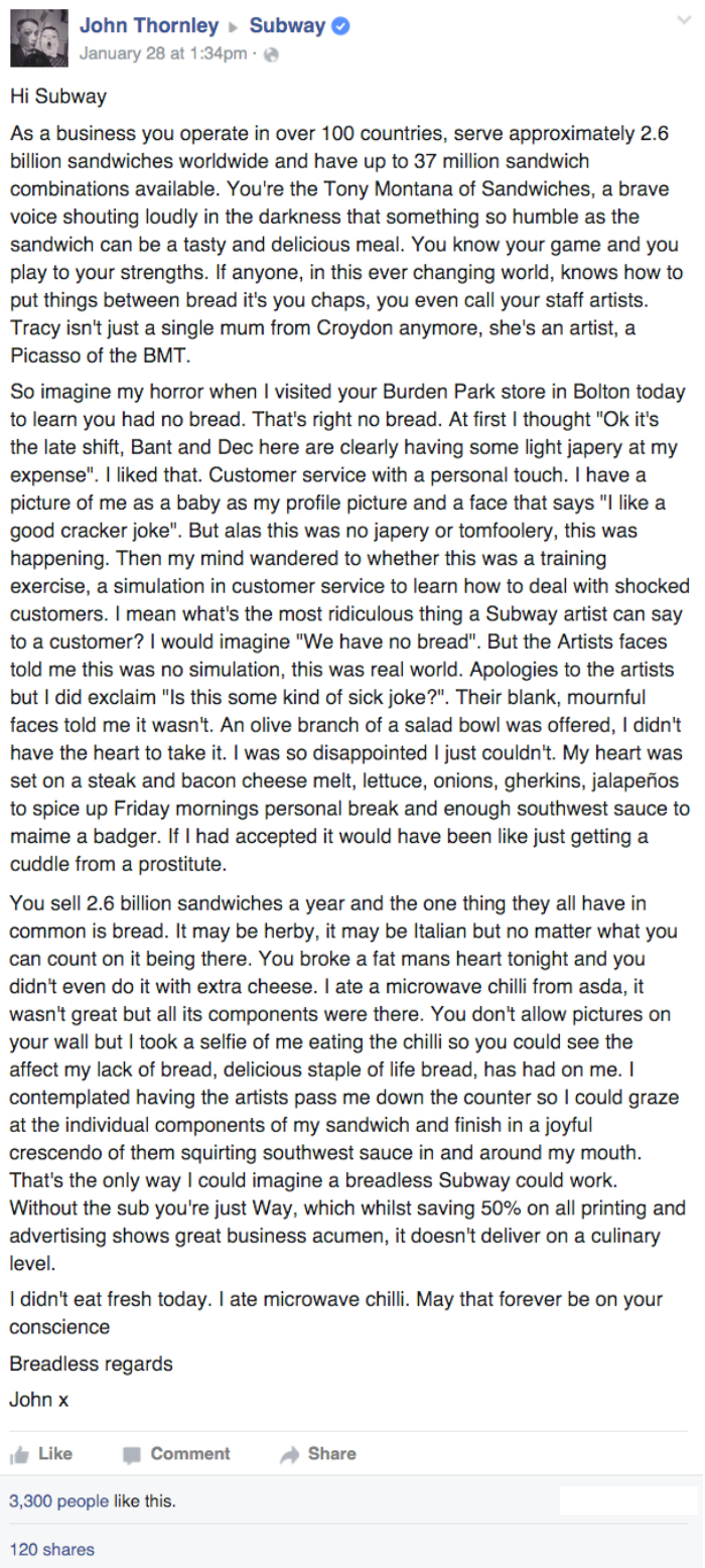 Probably the Most Thoughtful Complaint a Customer Could Leave After Being Left Breadless