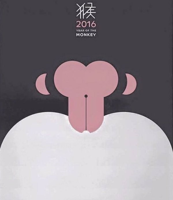 As the poster says, 2016 is the year of the monkey. Do you see the monkey in this minimalist design? The little ears, kind of a long face but it's pretty clear. Some people have pointed out that it looks like something else... though it's hard to place it.