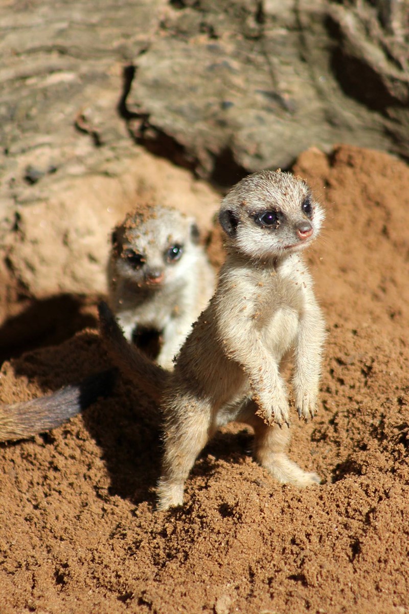 The adorable meerkat pups are the first to be born at Taronga Zoo in Sydney, Australia in seven years. Born just over a month ago on January 7th, the unnamed pups' first outing was to practice their sentry dusting skills. (^o^)