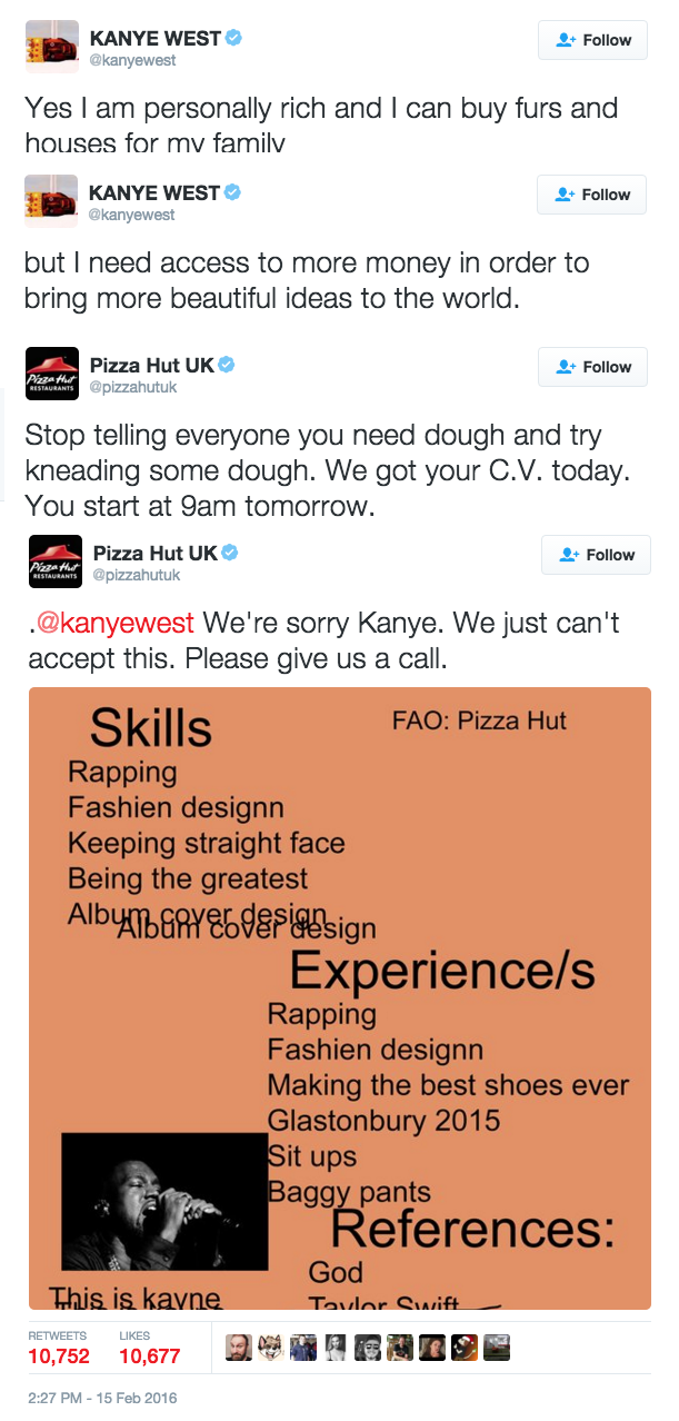Pizza Hut is Trying to Troll Kanye by Suggesting He Work for Them to Address His Debt Issues
