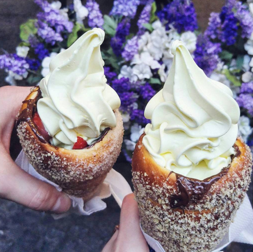 Once people started adding soft serve ice cream they became absolutely famous. Hopefully it'll only be a matter of time before this latest fatty food craze is available everywhere.