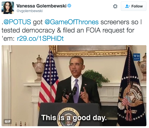 Brave Journalist Officially Asks Obama To Share His Game of Thrones Screeners